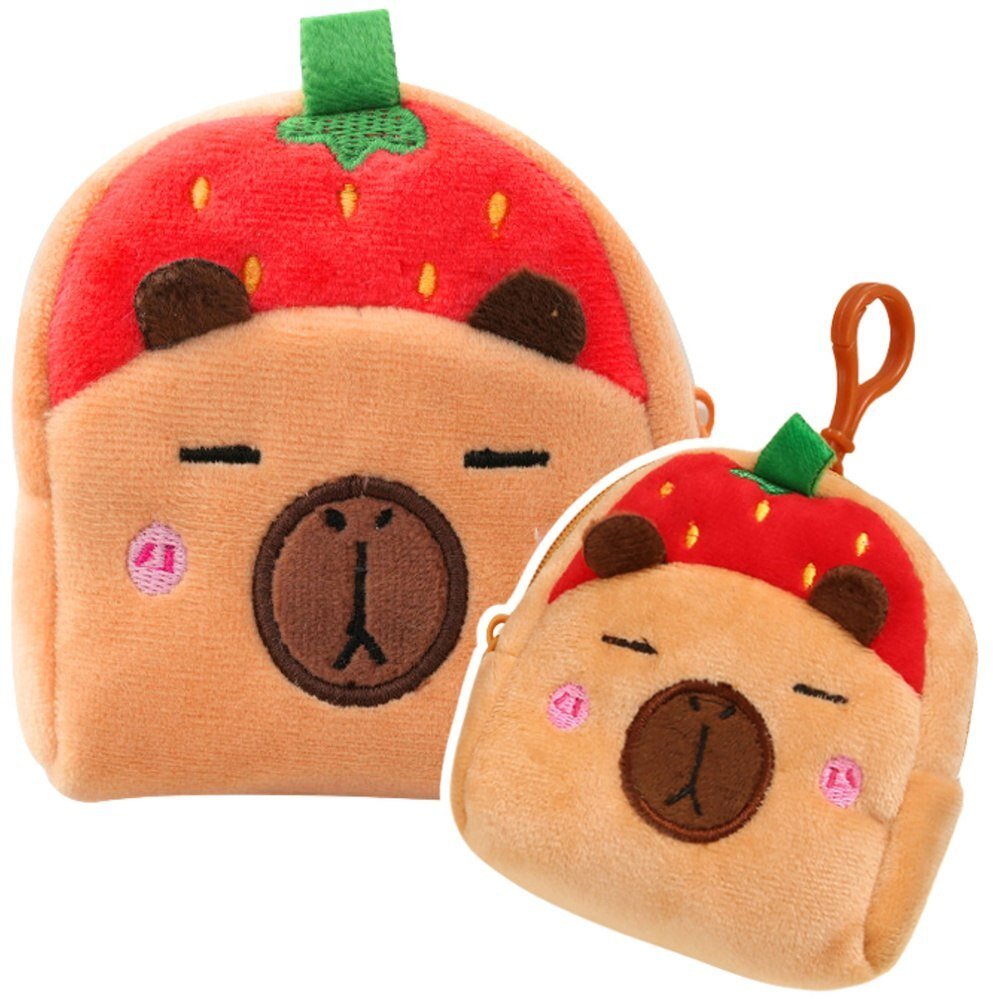 Portfelik Pluszowy Z Brelokiem Kapibara Truskawka Czerwona 9,5 x 8 cm