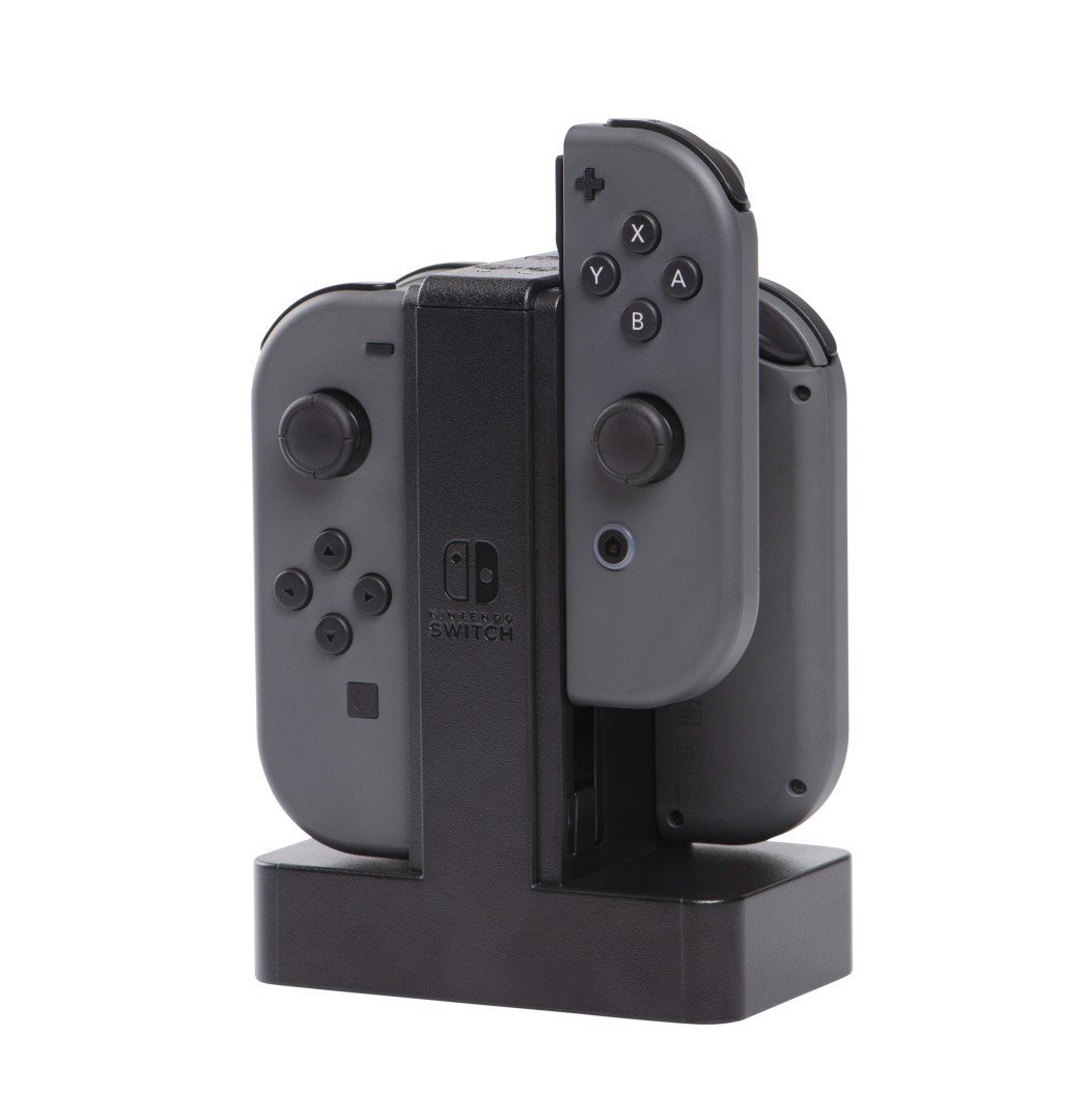 Stacja ładująca Joy-Con to najłatwiejsze rozwiązanie do ładowania kontrolerów Joy-Con Nintendo Switch. Ładuj 4 kontrolery Joy-Con jednocześnie dla wielu graczy lub utrzymuj dodatkową parę naładowaną dla jednego gracza. Po prostu przesuń kontrolery Joy-Con w dół i poczekaj, aż każda dioda LED ładowania zaświeci się!