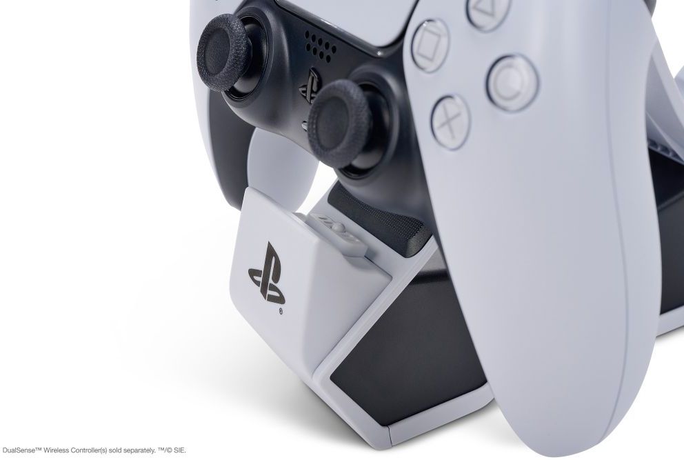 Ładuj i wyświetlaj swoje bezprzewodowe kontrolery DualSense za pomocą oficjalnie licencjonowanej Twin Charging Station dla PlayStation 5. Ładowanie dwóch kontrolerów jednocześnie jest proste — wystarczy kliknąć, aby zobaczyć, jak podstawa LED zaświeci się, wskazując poziom naładowania. Po naładowaniu kliknij w dół, aby zwolnić kontakt i włączyć grę. Lub po prostu zostaw kontroler na stacji, aby uzyskać niesamowity, przyciągający wzrok wyświetlacz.