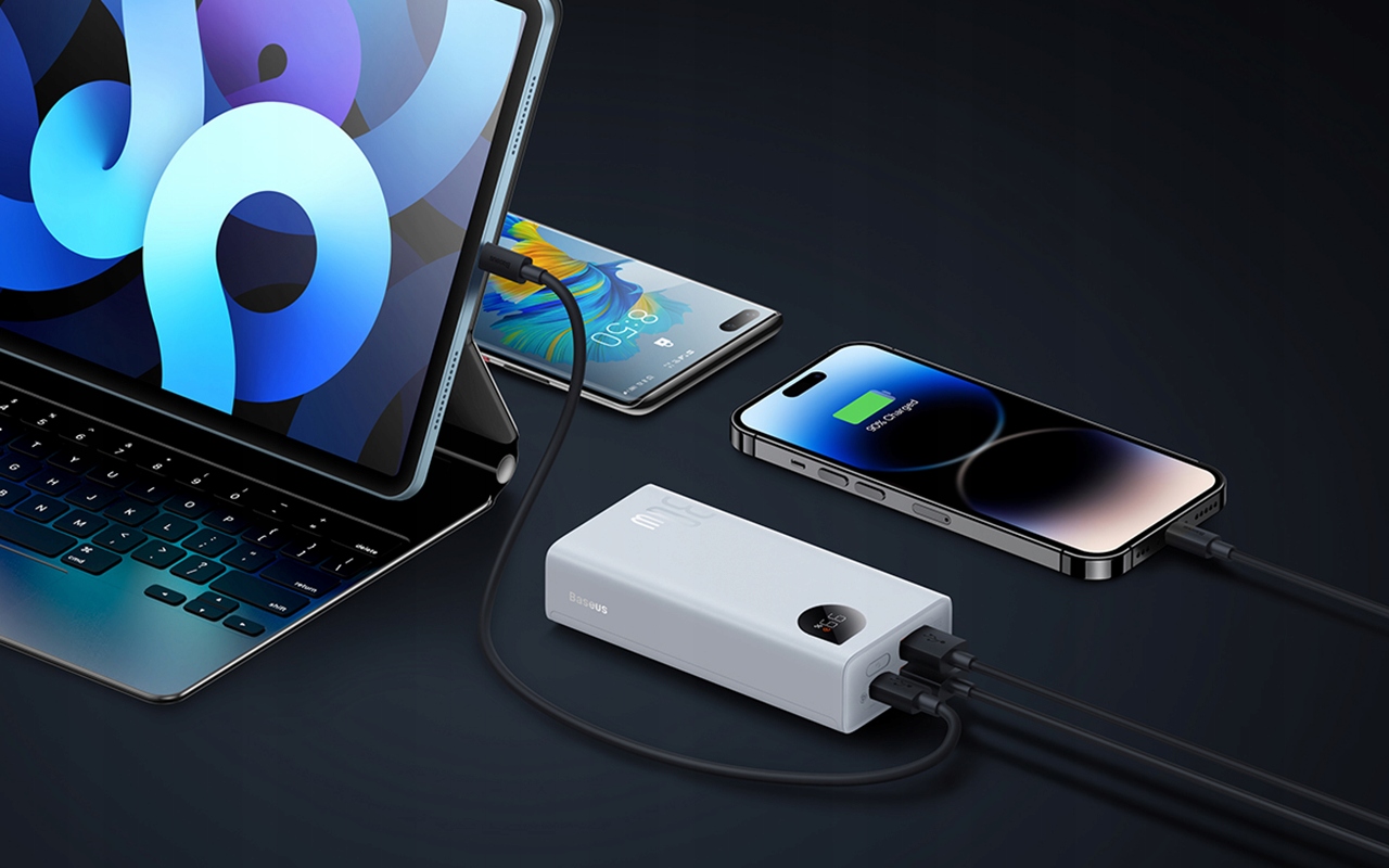 Powerbank obsługuje wiele popularnych protokołów szybkiego ładowania, w tym PD 30W, QC, SCP, FCP i AFC. Dzięki temu w ekspresowym tempie naładujesz zarówno smartfony Apple, Android, jak i tablety.