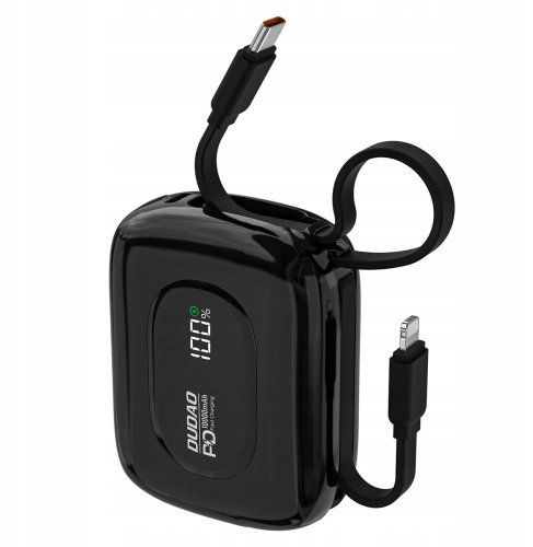 Powerbank Dudao K32 10000 mAh z wbudowanym kablem USB-C/Lightning - czarny