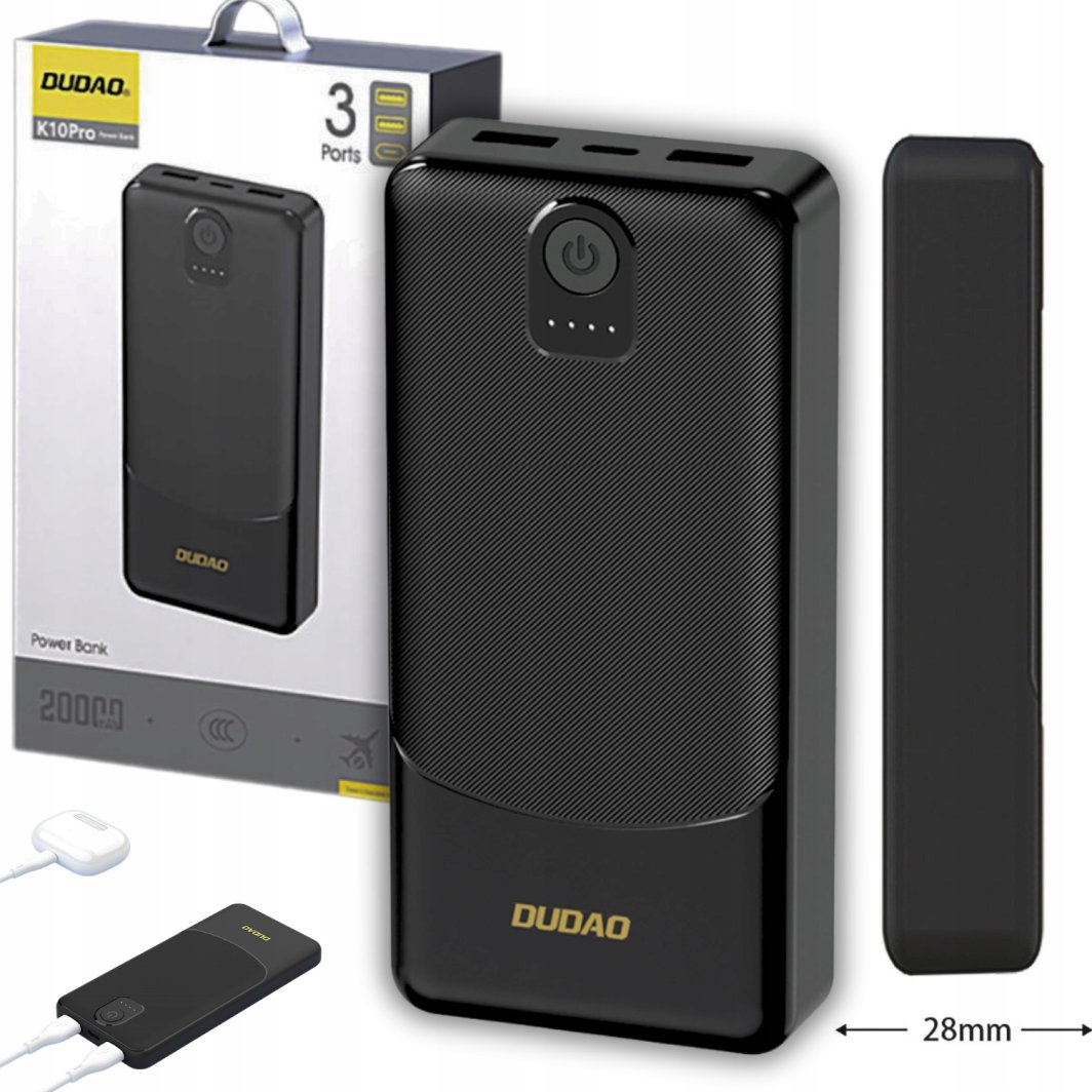 Kompaktowy rozmiar powerbanku sprawia, że łatwo mieści się w torbie, plecaku, a nawet kieszeni. Dzięki temu Dudao K10Pro jest idealnym towarzyszem na co dzień, w podróży czy podczas długich wyjazdów, zapewniając wygodę i mobilność.