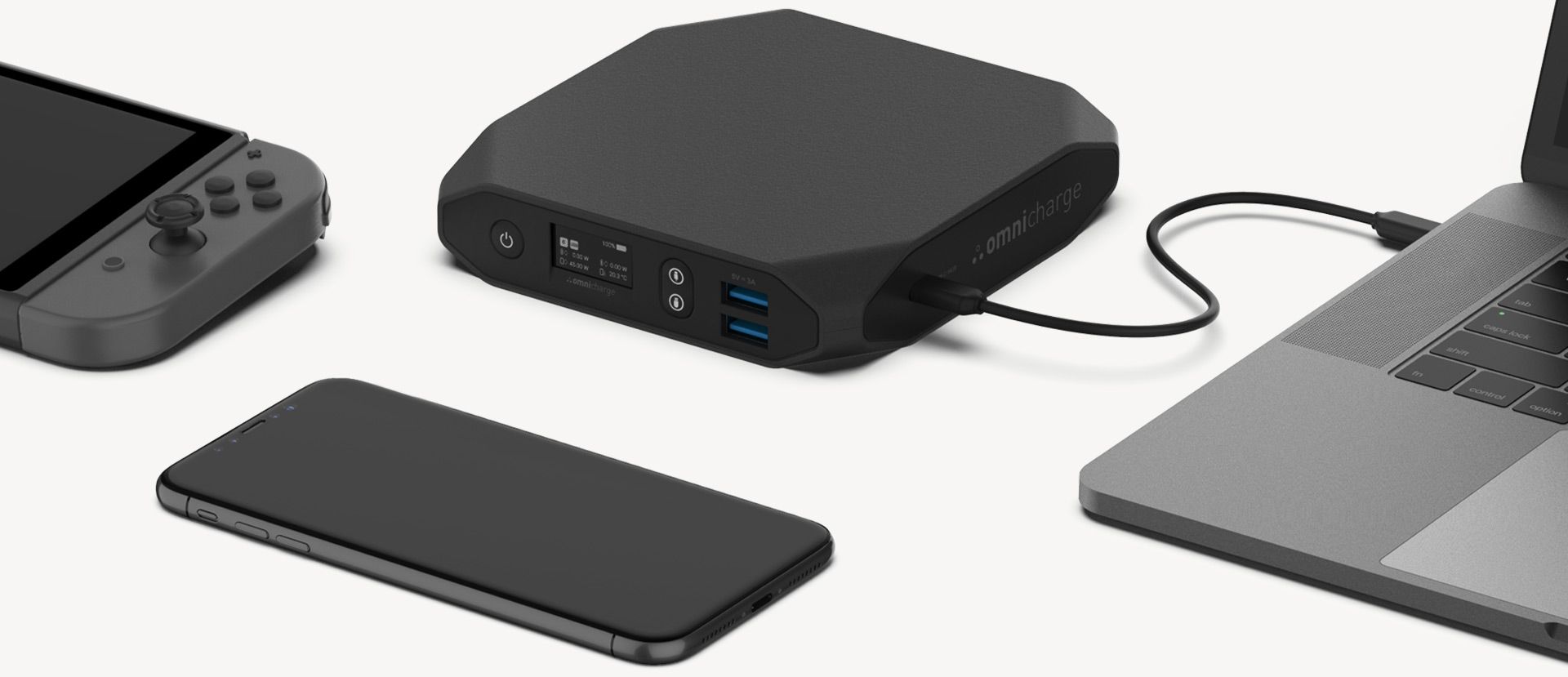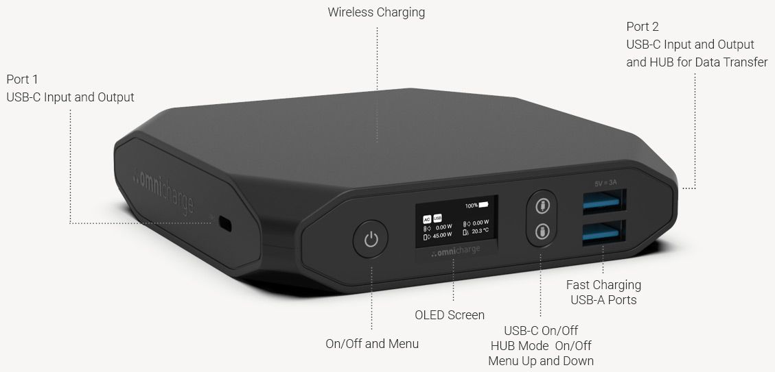Port USB-C w tym modelu zapewnia do 100W mocy wyjściowej i przyjmuje do 45W mocy wejściowej i jest kompatybilny ze standardami PD (Power Delivery). W porównaniu z podobnymi produktami, OMNI 20 USB-C zapewnia ponad dwukrotnie większą moc. Dzięki temu można nim zasilić najbardziej wymagające laptopy zasilane z USB-C, jak Apple, Lenovo, Dell, Chromebook i inne.