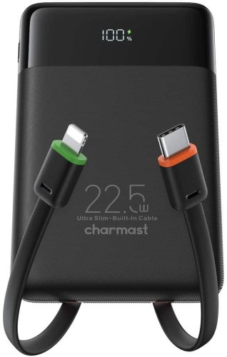 Powerbank Powerbank Charmast W1202 PD3.0 3A 22,5W 10000 mAh z wbudowanymi kablami USB C / Lightning czarny