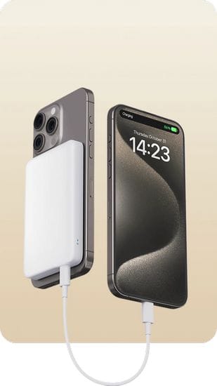 Kieszonkowy format i bezprzewodowa konstrukcja sprawiają, że ładowanie startuje natychmiast po zetknięciu z urządzeniem.