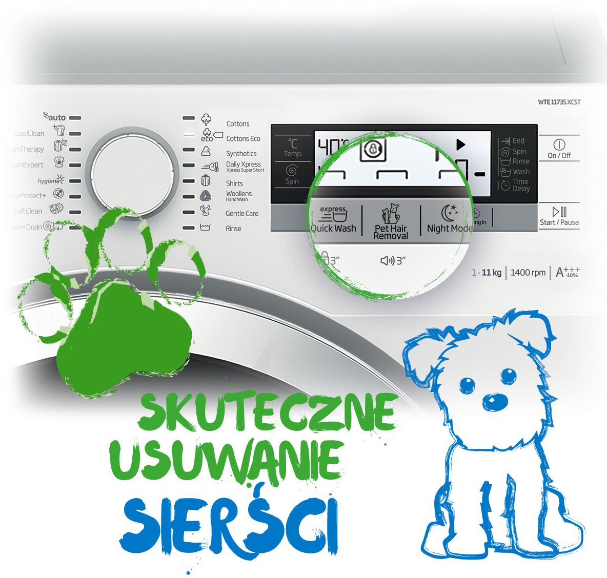 Beko znalazło doskonałe rozwiązanie dla wszystkich miłośników zwierząt domowych a w szczególności włochatych pupili. Specjalna funkcja PUPIL w wybranych modelach pralek Beko doskonale usuwa sierść Twojego czworonożnego przyjaciela. Dzięki innowacyjnym technologiom zastosowanym w produktach firmy Beko, nie musisz wyskubywać czy wygotowywać sierści z pokrytych nią ubrań. W pralkach posiadających funkcję PUPIL postawiliśmy na wielokrotne płukanie i odwirowywanie tak, by Wasze ubrania po skończonym praniu były idealnie czyste. Ponadto dodatkowe podgrzewanie wody ma na celu skutecznie rozluźniać włókna tkanin przed samym procesem płukania tak, by jak największa ilość sierści mogła zostać skutecznie usunięta. Cykl prania, który został specjalnie zmodyfikowany z myślą o Waszych Pupilach, doskonale sprawdzi się nawet w przypadku najbardziej włochatych przyjaciół.