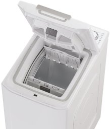 Pralka została zaprojektowana z myślą o wygodzie użytkowania, oferując załadunek od góry oraz innowacyjny system otwierania bębna, który ułatwia załadunek i rozładunek prania, co jest szczególnie praktyczne w codziennym użytkowaniu.