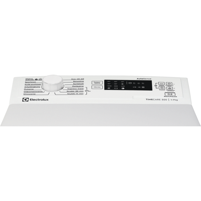 Pralka ładowana od góry TimeCare 500 z funkcją AutoSense i certyfikatem Woolmark Blue, pojemność 7 kg.