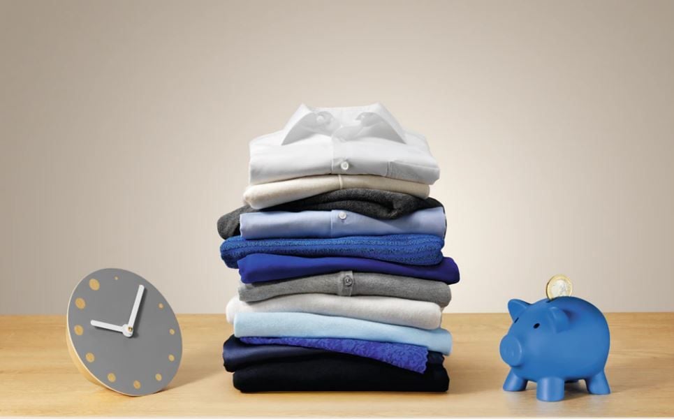 Kompaktowa pralka PerfectCare 600 z systemem SensiCare dostosowuje czas trwania programu do ilości odzieży, aby zaoszczędzić wodę i energię, a także zapobiec zbyt długiemu praniu.