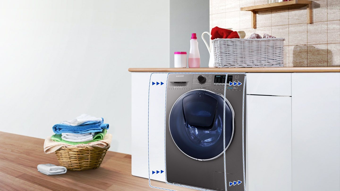 Pralko-suszarka slim to kompaktowe rozwiązanie, które doskonale wpasuje się w aranżację każdego wnętrza. Dzięki głębokości zaledwie 46 cm dopasuje się do każdej przestrzeni. Pojemność pralko-suszarki to aż 8kg prania. Oznacza to, że w jednym cyklu można wyprać aż 16 ręczników kąpielowych*.
