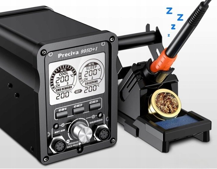 Stacja lutownicza Preciva 995D to doskonałe rozwiązanie dla każdego, kto szuka uniwersalnego narzędzia do lutowania i odlutowywania. Dzięki nowoczesnej technologii oraz funkcjom, które spełnią oczekiwania zarówno hobbystów, jak i profesjonalistów, ta stacja stanie się niezastąpionym elementem Twojego warsztatu.