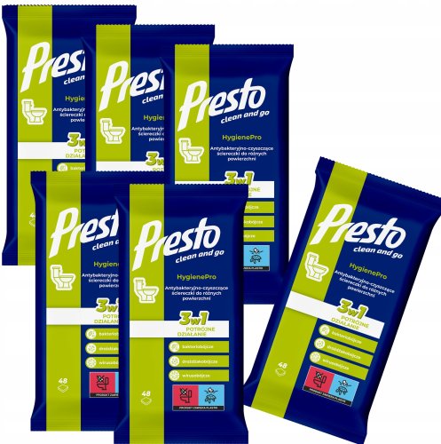 Presto Ściereczki Nawilżane 48szt. - Dezynfekcja Toalet WC
