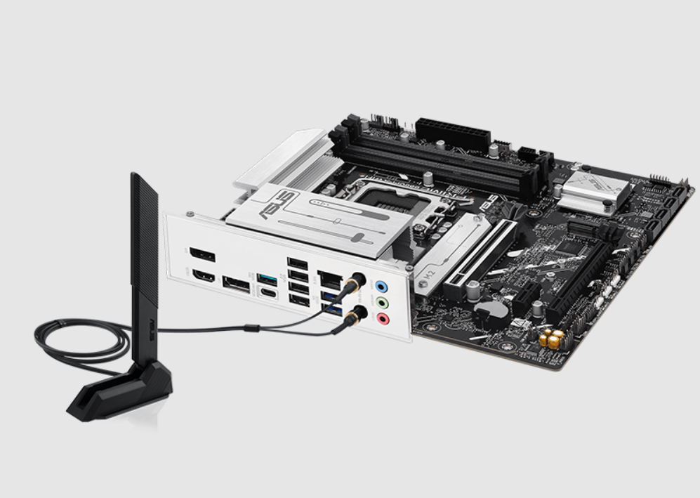 PRIME B860M-A WIFI oferuje łącznie dwa gniazda M.2, w tym jedno obsługujące prędkość przesyłu danych do 128 Gb/s przez PCIe 5.0, a drugie obsługujące 64 Gb/s przez PCIe 4.0. Umożliwia to szybsze uruchamianie i ładowanie aplikacji z dyskami systemu operacyjnego lub aplikacji.