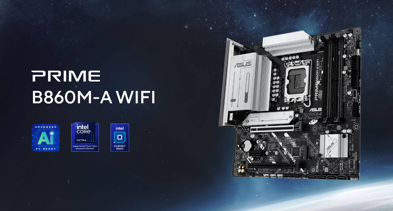 Płyty główne ASUS z serii PRIME zostały zaprojektowane przez ekspertów, aby uwolnić pełen potencjał najnowszych procesorów Intel® Core™ Ultra (seria 2). Płyta główna PRIME B860M-A WIFI, która oferuje solidną konstrukcję zasilania, kompleksowe rozwiązania chłodzenia i inteligentne opcje dostrajania, zapewnia użytkownikom i majsterkowiczom PC DIY szereg optymalizacji wydajności za pomocą intuicyjnych funkcji oprogramowania i oprogramowania układowego. Została zaprojektowana tak, aby była gotowa na komputery Advanced AI, oferując moc i łączność potrzebną do wymagających aplikacji AI.