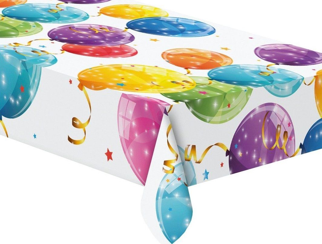 Foliowy obrus urodzinowy Baloniki. Wielkość: 120 x 180 cm. Opakowanie: 1 szt.