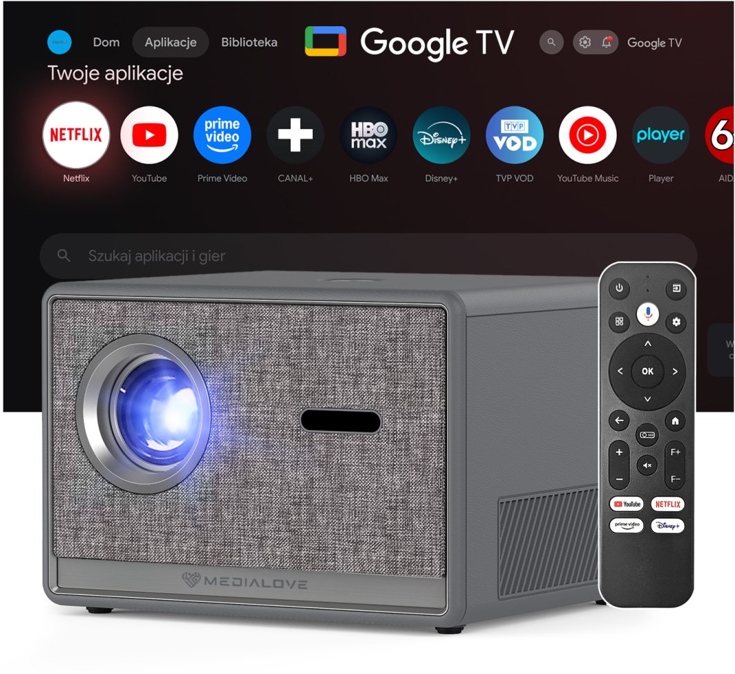 Projektor LED Medialove M1000 GTV Certyfikowany GoogleTV 11 Autofocus