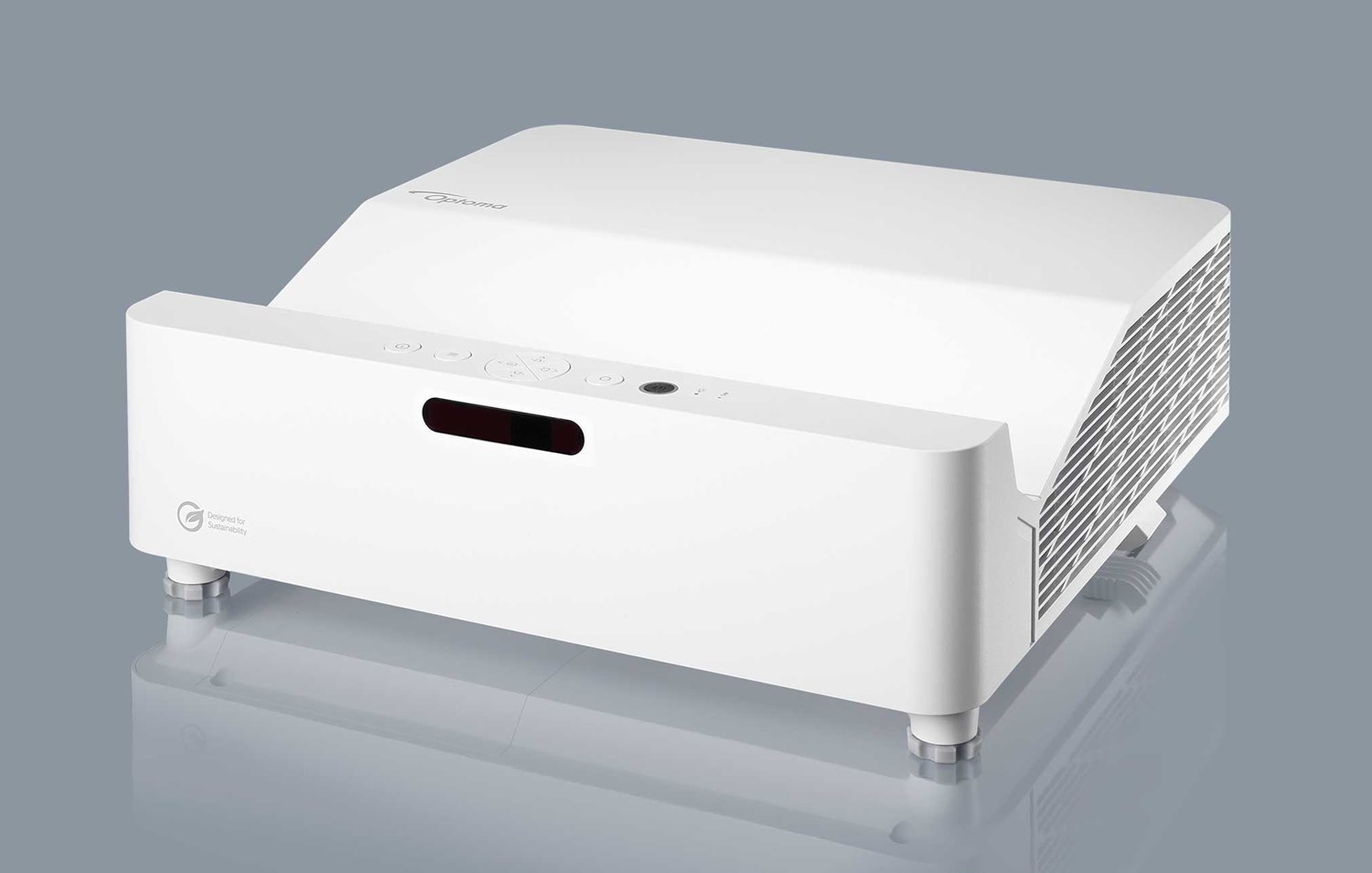 Jest wyposażony w obiektyw UST o bardzo krótkim rzucie, co oznacza, że może wyświetlać 100-calowy obraz z odległości mniejszej niż 0,5 m. Ta bliska odległość pozwoli Ci uniknąć rzucania cieni na ekran przez uczestników spotkania, wchodzących w światło projektora. Dla maksymalnej wygody sterowania jest wyposażony w RS232, HDBaseT3.0 i OMS (Optoma Management Suite) - system służący do monitorowania i sterowania.