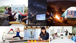 Wyjątkowo łatwy w obsłudze miniprojektor z wbudowanym akumulatorem umożliwia wyświetlanie obrazu o przekątnej do 60 cali i wygodne oglądanie. Urządzenie zapewnia wszystkie opcje łączności niezbędne do przesyłania ulubionych programów.