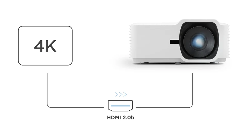 Projektor został wyposażony w port HDMI 2.0b z obsługą standardu HDCP 2.2, co umożliwia odbieranie sygnału w pełnej rozdzielczości 4K przy płynności 60 Hz oraz wsparcie dla technologii HDR10 i HLG. Niezależnie od tego, czy odtwarzasz filmy z odtwarzacza 4K Blu-ray, czy streamujesz treści, możesz cieszyć się olśniewającą bielą, głęboką czernią i niezwykłą szczegółowością obrazu.