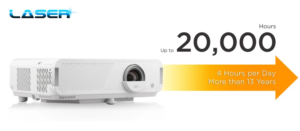 Model LX750-4K wykorzystuje technologię laserowo-fosforową trzeciej generacji, która gwarantuje długotrwałą i bezawaryjną pracę. Dzięki żywotności sięgającej 20 000 godzin możesz zapomnieć o wymianie lamp. To niezawodna rozrywka przez cały rok, a jednocześnie oszczędność Twojego czasu, wysiłku i pieniędzy.