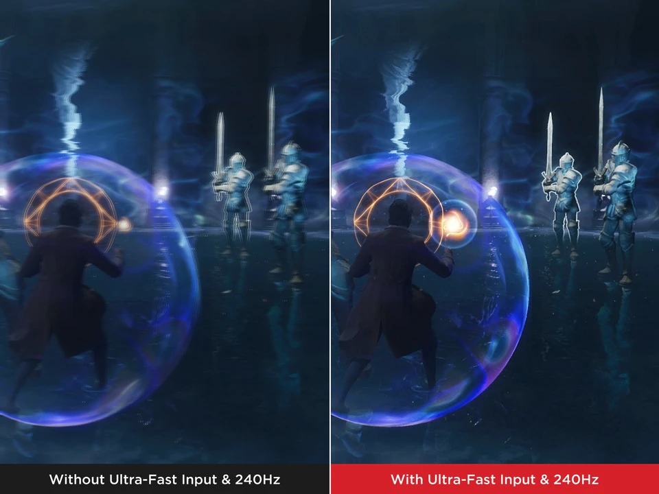 Zyskaj przewagę nad przeciwnikami dzięki ultraszybkiemu czasowi reakcji 1 ms* i oszałamiającej częstotliwości odświeżania 240 Hz. Dynamiczne sceny akcji, transmisje sportowe i szybkie gry będą odtwarzane z krystaliczną płynnością, bez żadnych opóźnień i rozmycia ruchu.