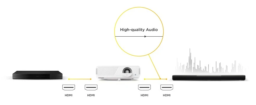 Port HDMI z obsługą ARC (Audio Return Channel) pozwala na przesyłanie obrazu i dźwięku za pomocą jednego kabla. Uprość swoje centrum rozrywki, podłączając projektor do systemu audio w łatwy i estetyczny sposób.