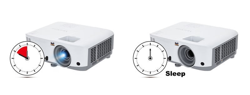 Zapominanie o wyłączeniu projektora to częste zjawisko, szczególnie w miejscach publicznych, takich jak sale lekcyjne i konferencyjne. Timer uśpienia w modelu PA503S pozwala ustawić okres bezczynności, po którym projektor automatycznie przejdzie w tryb uśpienia.