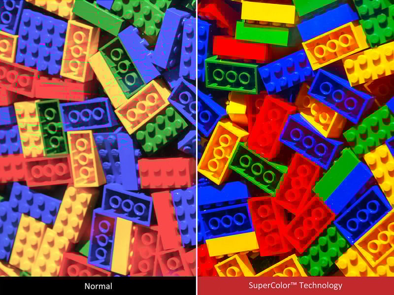 Autorska technologia SuperColour™ firmy ViewSonic wyświetla szeroką gamę widocznych kolorów, zapewniając realistyczne i precyzyjne odwzorowanie barw zarówno w jasnym, jak i ciemnym otoczeniu, bez utraty jakości obrazu.