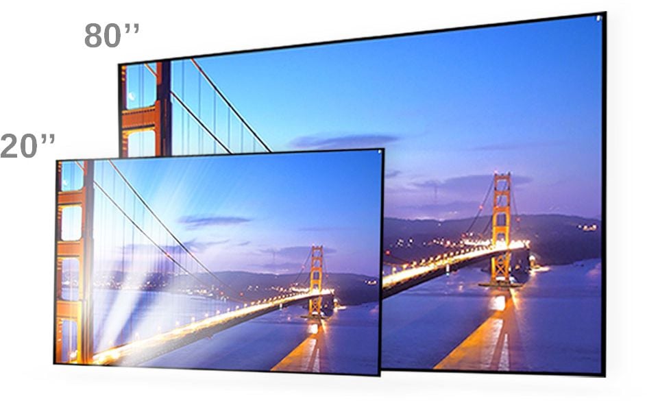 Projektor pozwala wyświetlać obrazy o przekątnej aż do 80 cali. Został wyposażony w funkcję korekcji obrazu „Keystone”, która da Ci pewność, że obraz będzie idealnie prostokątny niezależenie od kąta wyświetlania projektora.