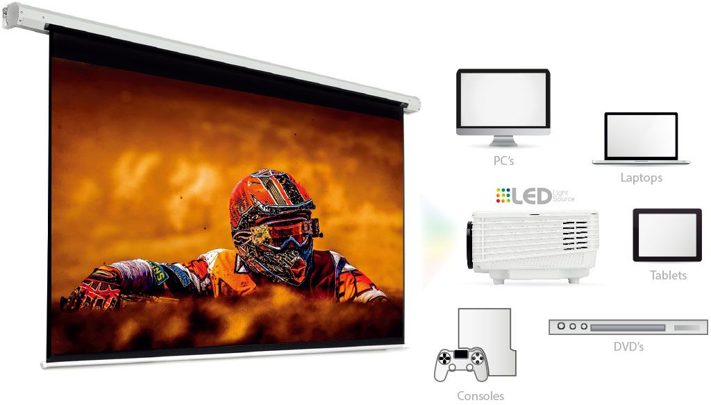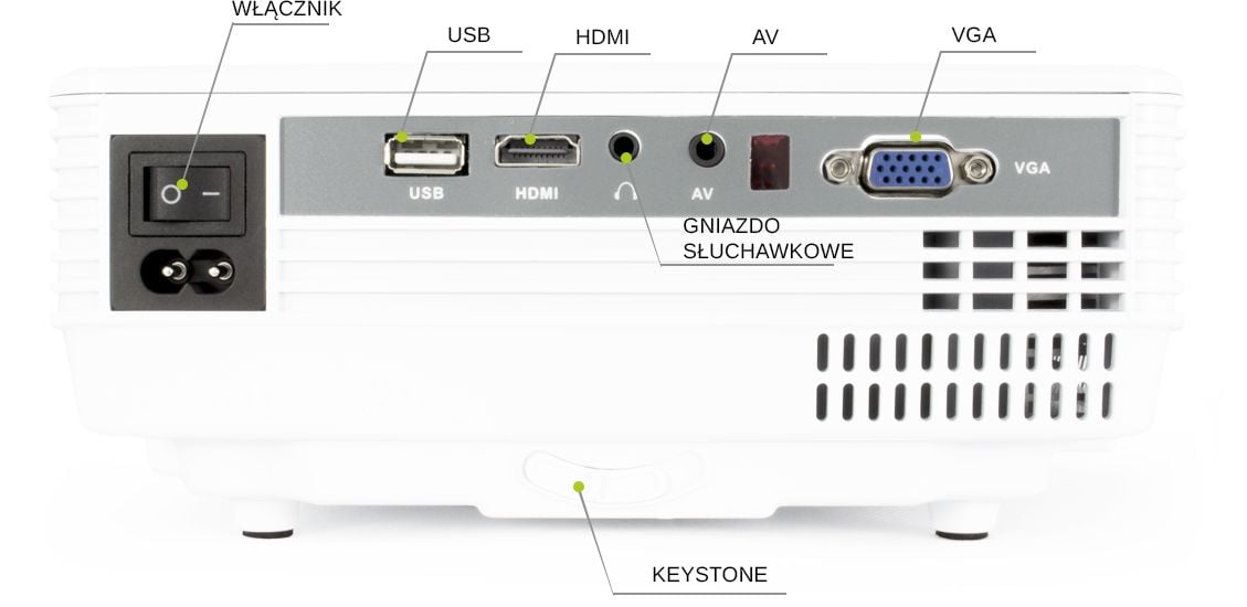 Do projektora można podłączyć wiele urządzeń tj. laptopy, DVD, konsole. Wyświetlanie obrazu z PC / laptopa / konsoli odbywa się przez złącza VGA lub HDMI.