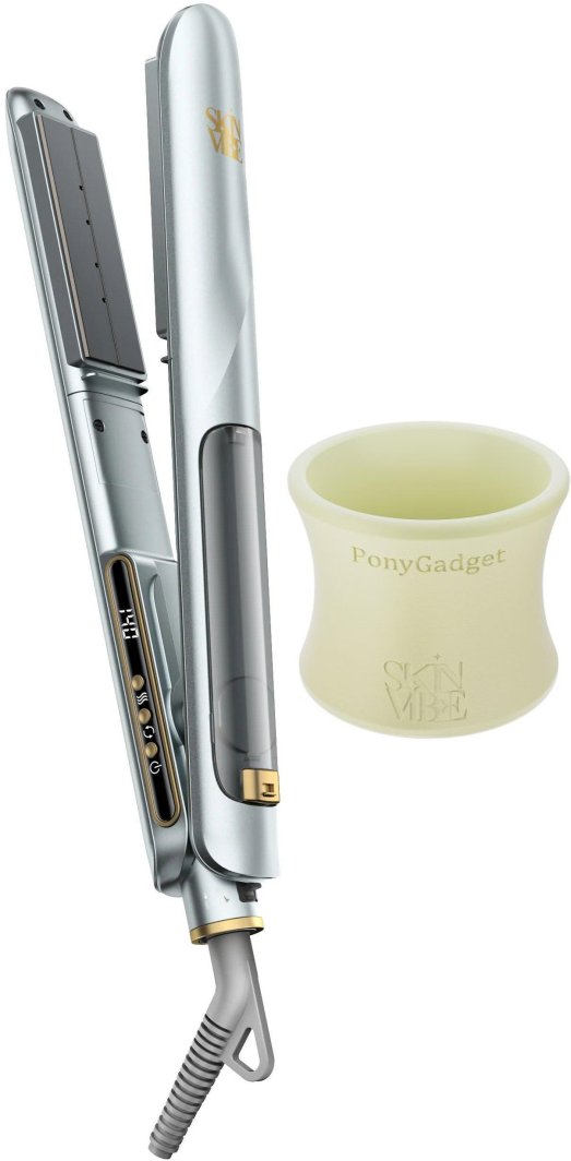 Prostownica SkinVibe SkinVibe Astra SteamPlasma Silver + SkinVibe PonyGadget - Guma do włosów, kremowa (SV-004CR)