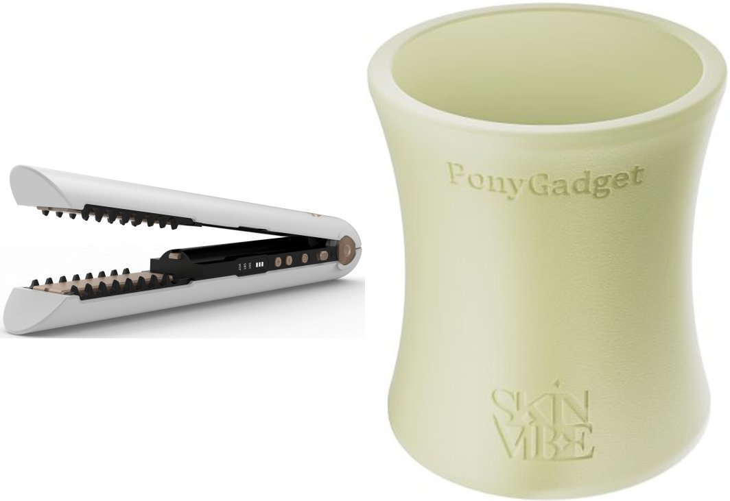 Prostownica SkinVibe SkinVibe Luna MiniWireless (SV-003WH) + SkinVibe PonyGadget - Guma do włosów, kremowa, XL (SV-006CR)