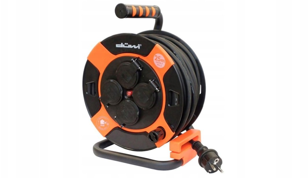 Przedłużacz bębnowy 4-gniazdowy H05RR-F 3G1.5 25m IP44 / 24631 to idealne rozwiązanie dla osób poszukujących niezawodnego zasilania w różnych warunkach. Jego długość wynosząca 25 metrów umożliwia podłączenie wielu urządzeń w domach, warsztatach, garażach oraz na budowach, co czyni go niezwykle wszechstronnym produktem.
