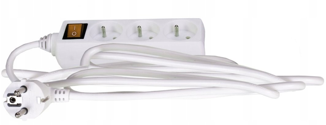 Ten model przedłużacza jest wyposażony w 3 gniazda, co umożliwia jednoczesne podłączenie kilku urządzeń. Dodatkowo, wbudowany wyłącznik ON/OFF pozwala na łatwe zarządzanie zasilaniem, co zwiększa komfort użytkowania.
