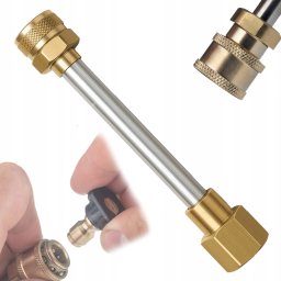 Przedłużka lanca adapter QC 1/4 TR22 jest przeznaczona do współpracy z różnymi akcesoriami, takimi jak pianownice, lance oraz węże ciśnieniowe. Dzięki temu użytkownicy mogą dostosować swoje urządzenia do indywidualnych potrzeb, co zwiększa efektywność pracy.