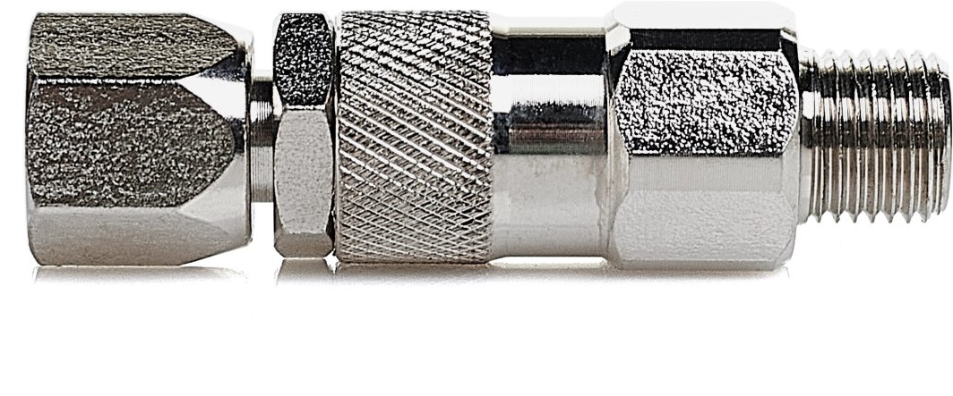 Przegub obrotowy jest przeznaczony do hydrodynamicznych urządzeń malarskich i pasuje do gwintu 1/4", co pozwala na szerokie zastosowanie w różnych projektach malarskich.