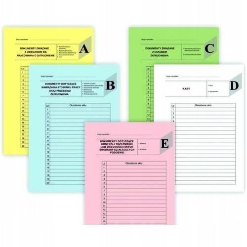 Przekładki do akt osobowych A4 "ABCDE" to znakomity wybór dla każdego biura, urzędu czy firmy, które pragną uporządkować swoją dokumentację. Dzięki nim organizacja akt osobowych staje się prostsza i bardziej efektywna. Wykonane z wysokiej jakości papieru, te przekładki są nie tylko funkcjonalne, ale również estetyczne, co sprawia, że doskonale nadają się do profesjonalnej pracy.