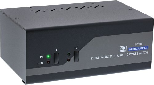 Przełącznik InLine InLine® Desktop KVM Switch, 2-port, Dual Monitor, Displayport 1.2 + HDMI 2.0, 4K, USB 3.0, Audio