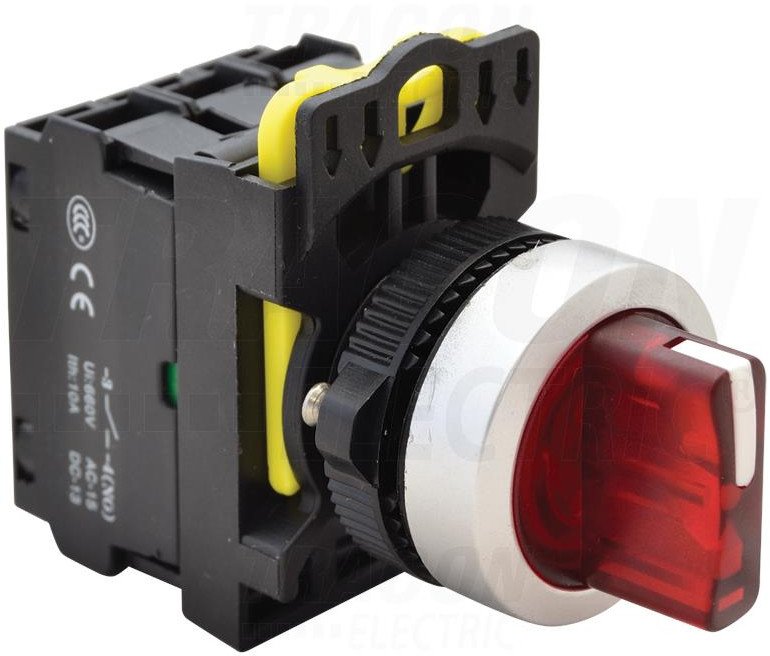 Przełącznik pokrętny podświetlany LED, trzystanowy sprężynowy NYK3-SL34R czerwony