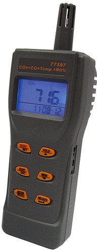 Miernik AZ 77597 umożliwia precyzyjne pomiary stężenia tlenku węgla (CO), poziomu dwutlenku węgla (CO2), wilgotności oraz temperatury otoczenia. Dzięki temu użytkownik zyskuje pełny obraz jakości powietrza, co jest niezbędne w wielu zastosowaniach.