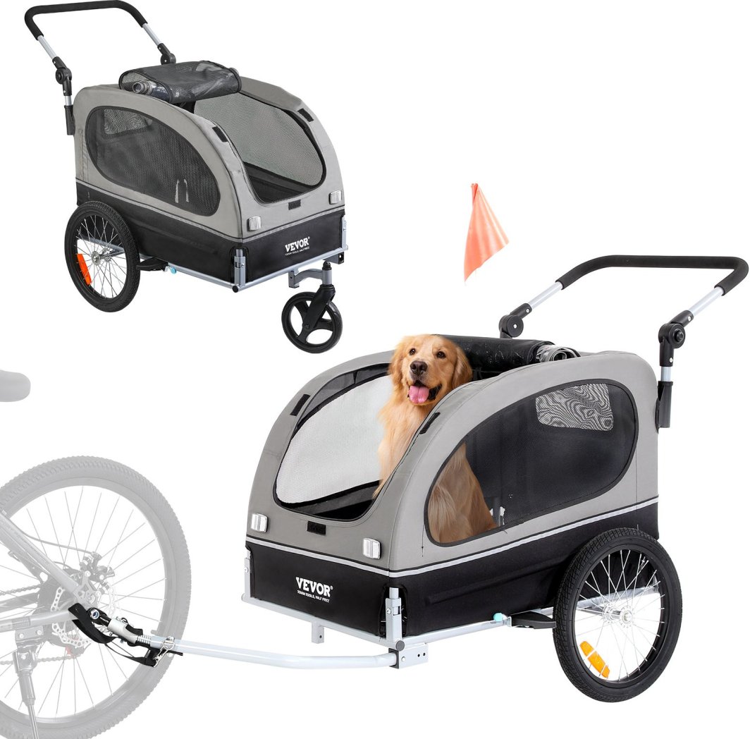 Przyczepa jest uniwersalna i może być używana jako wózek dla zwierząt. Kompatybilna z kołami o średnicy 22" - 28".