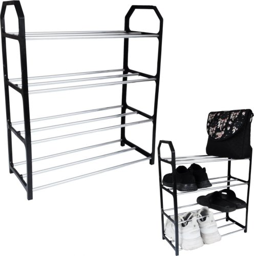 Praktyczna półka na buty, wykonana z tworzywa sztucznego z metalowymi poprzeczkami. Produkt charakteryzuje estetyczny, nowoczesny wygląd oraz szybki i prosty montaż bez narzędzi! Różne ułożenie otworów umożliwia dostosowanie półek do różnych rozmiarów butów.
