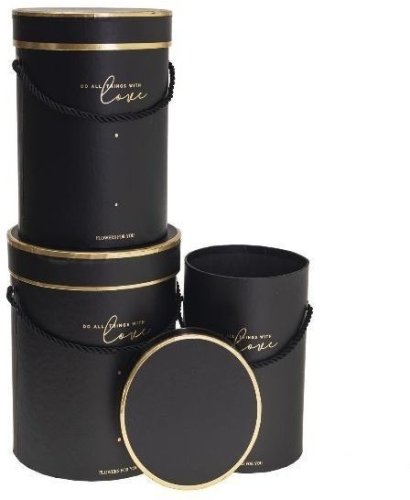 Pudełko Flower Box 3szt czarny ROZETTE to doskonałe rozwiązanie dla tych, którzy szukają eleganckich i praktycznych akcesoriów do pakowania prezentów lub dekoracji wnętrz. Zestaw składa się z trzech pudełek w różnych rozmiarach, które świetnie sprawdzą się na każdą okazję. Ich uniwersalny czarny kolor sprawia, że idealnie wkomponują się w wiele stylów i aranżacji.