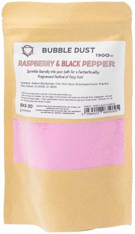Puder do kąpieli – Malina i Pieprz. Waga 190 g. Puder jest idealny dla każdego, kto szuka wysokiej jakości, nowatorskiego produktu do swojej łazienki. Każdy proszek do kąpieli składa się z mieszaniny kwasu cytrynowego i wodorowęglanu sodu w celu zmiękczenia wody. Ponadto wszystkie zawierają masło shea, które zmiękcza skórę. Puder ma taki sam efekt, jak kule do kąpieli, tylko w formie sproszkowanej. Po prostu wsyp do ciepłej kąpieli tyle proszku, na ile masz ochotę!