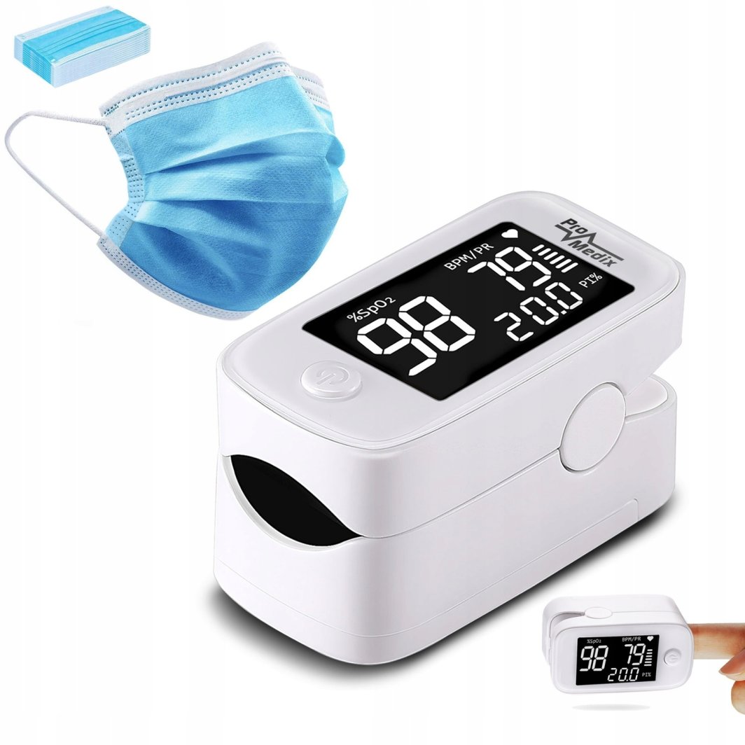 Pulsoksymetr ProMedix Pulsoksymetr napalcowy medyczny pulsometr oksymetr Promedix PR-870 1.5” HD LED+ 2x Maseczki medyczne CE EN 14683:2019 - zestaw -