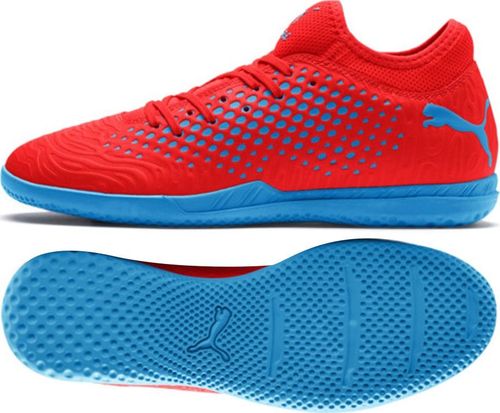 Kategoria: piłka nożna, Dla kogo: męska, Kolor: pomarańczowy, Cholewka: materiał syntetyczny, Podeszwa zewnętrzna: halówka, Marka Sprzedaży: Puma, Linia: Future, Poziom: Rekreacyjne, Przeznaczenie: Na hale, Kolekcja: wiosna 2019