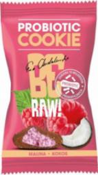BeRAW PROBIOTIC COOKIE to innowacyjne ciasteczko RAW z pysznym i miękkim nadzieniem. W jednym ciasteczku znajduje się aż 10 miliardów bakterii probiotycznych (synbiotyk), posiadających zdolność wytwarzania kwasu mlekowego. Ciasteczko zostało wzbogacone błonnikiem z cykorii, który stanowi pożywkę dla bakterii, dzięki której mogą się one namnażać. BERAW PROBIOTIC COOKIE RASPBERRY & COCONUT jest na bazie daktyli, otrębów owsianych, surowego kakao, wiórków kokosowych z malinami.