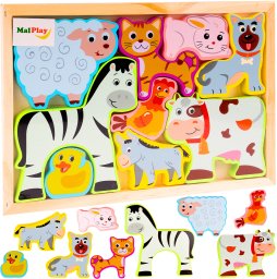 Puzzle Drewniana Układanka Farma Zoo Zwierzęta Montessori Plansza Klocki