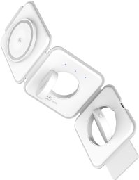 Innowacyjny, składany design stacji ładującej sprawia, że jest ona niezwykle praktyczna w podróży. Możesz ją ustawić płasko lub złożyć w trójkątny stojak, co umożliwia wygodne korzystanie z urządzeń podczas ładowania. Jej kompaktowe wymiary (8 cm szerokości, 2.95 cm wysokości, 11.6 cm głębokości) sprawiają, że łatwo zmieści się w torbie lub bagażu.