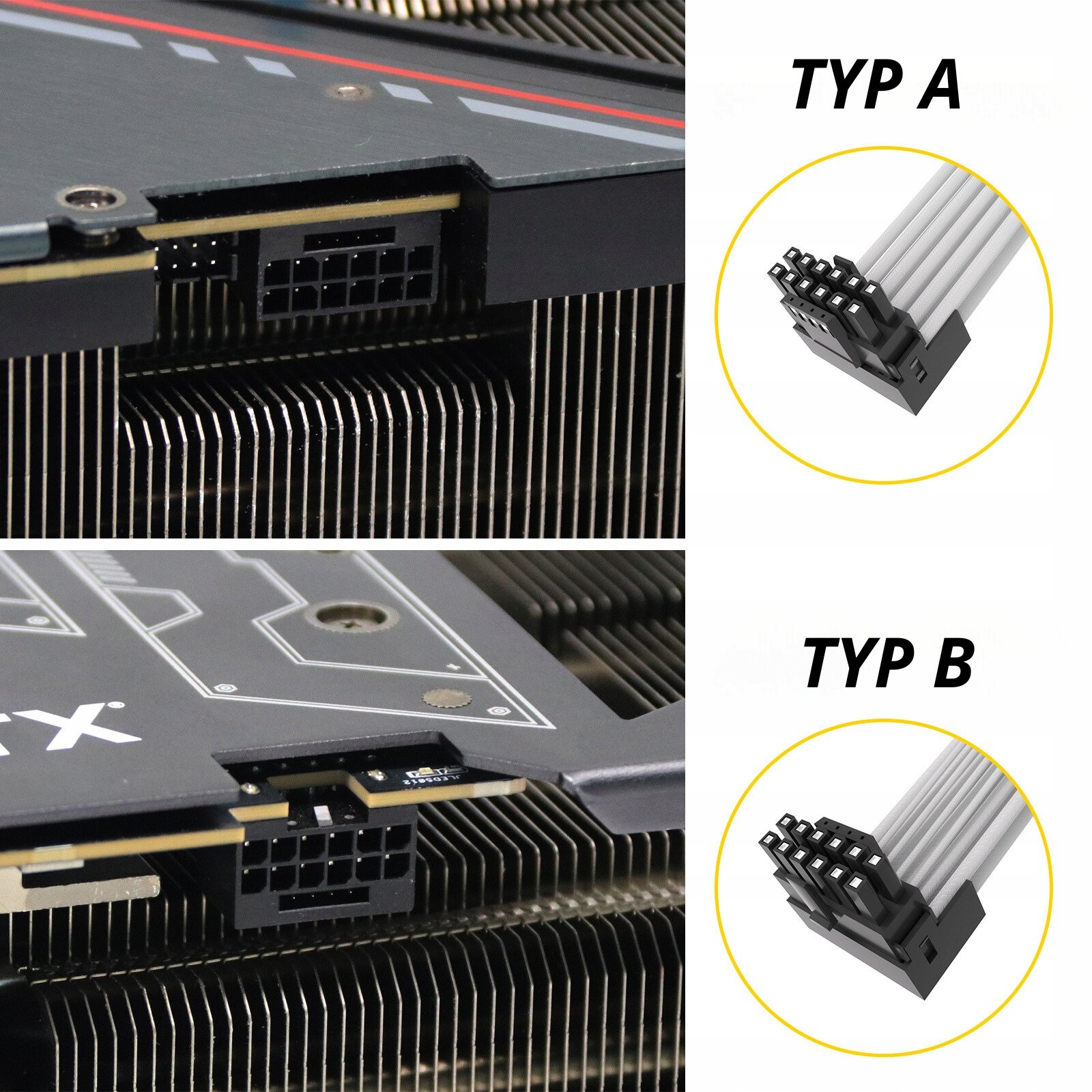 Przed zakupem zalecamy sprawdzić jak wygląda złącze w karcie graficznej, TYP B również dostępny w naszej ofercie